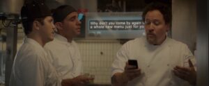 Aan het einde voegt de regisseur nog een extra laag toe aan de zoete basis van de film: umami. Niet alleen op het bord (met urenlang gemarineerde en gerookte brisket), maar ook in het verhaal. De film vertraagt, relaties verdiepen en oude tegenstanders worden vrienden. En omdat het toch een zoete feelgood film is, komt het natuurlijk ook in de liefde weer goed. Zo eindigt Chef met een zoet-umami nasmaak: rond, troostend, familiair. Een gevoel van diepe tevredenheid en verbondenheid.