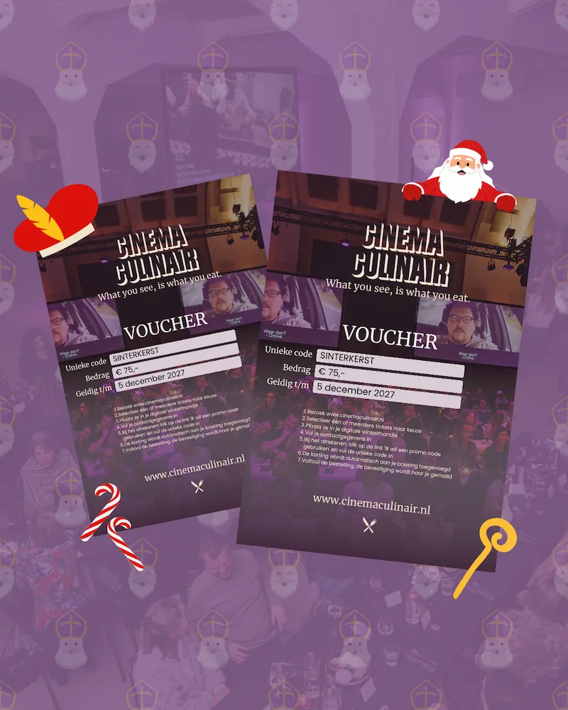 Verras deze Sinterklaas of Kerst met een avond vol smaak én film. Met de cadeaubon van Cinema Culinair geef je geen standaard cadeau, maar een unieke beleving.
